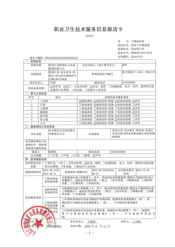 雙鴨山市合鑫采石有限公司職業(yè)病危害定期檢測(cè)